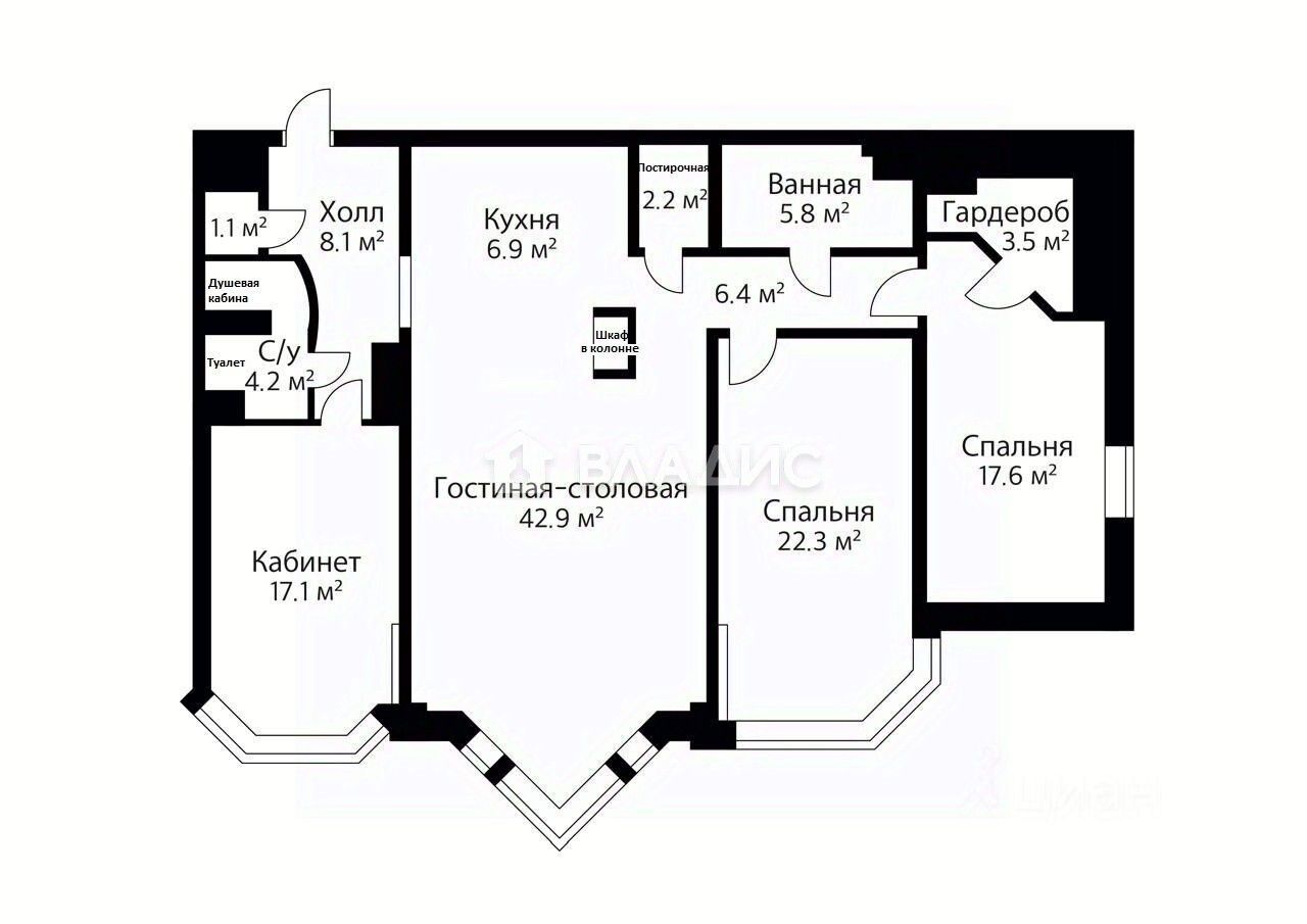 Общая площадь квартиры составляет 138 кв. м, жилая — 100 кв. м, площадь кухни — 7 кв. м. Высота потолков — 2,8 м. Квартира расположена не в угловом секторе здания. Четыре изолированные комнаты предоставляют множество возможностей для зонирования пространства, что идеально подходит для семей с детьми и инвесторов, рассматривающих покупку для сдачи в аренду.