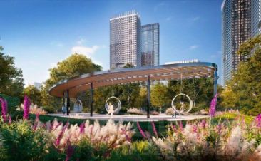 Концепция благоустройства объединяет территорию комплекса в единую композицию с прогулочным бульваром, природным комплексом и ландшафтным парком.