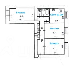 Три просторные изолированные комнаты 18.1, 16.5 и 18.6 кв.м., большая кухня 12.2 кв.м., большой совмещенный санузел.