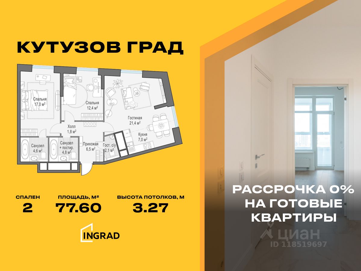"Кутузов Град" расположен в перспективном развивающемся районе. Локация станет ещё более привлекательной после завершения работ по благоустройству природного заказника и реконструкции объекта культурного наследия. В квартале представлены готовые квартиры по выгодной цене: есть возможность выбрать лоты с мастер-спальнями и лоджиями. Доступны варианты с готовой отделкой, а также без отделки - для тех, кто хочет создать свой уникальный интерьер.