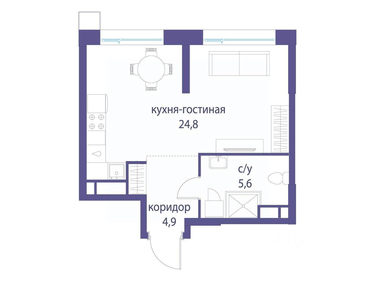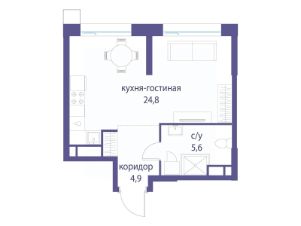 Продается квартира-студия от застройщика: общая площадь 35.30 м², жилая 10.00 м², кухня 14.80 м², 13-й этаж, жилой квартал "Гордость", корпус 36 (секция 4). Срок сдачи: 2 квартал 2029 года.