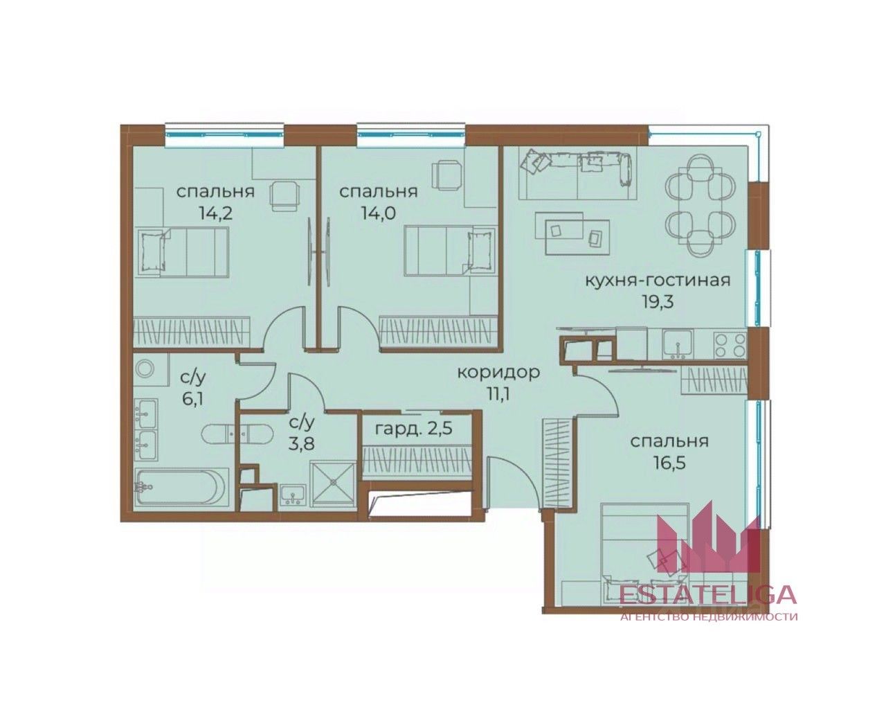 Id 58818. Трёхкомнатная квартира без обременений в ЖК Остров.