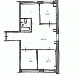 - 3 изолированных комнаты 9,3 кв.м., 9,5 кв.м. и 10,5 кв.м. с большими окнами практически во всю ширину стены;