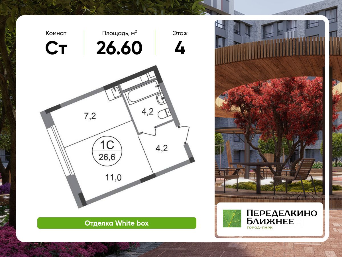 Общая площадь квартиры - 26,6 кв. м, этаж 4 из 17.