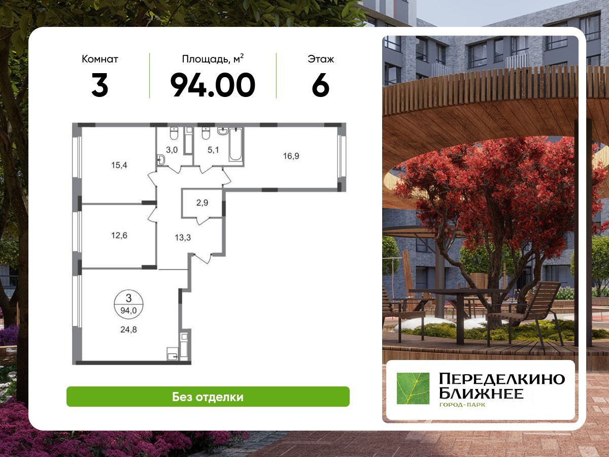 Продается трехкомнатная квартира без отделки в 18 фазе города-парка "Переделкино Ближнее".