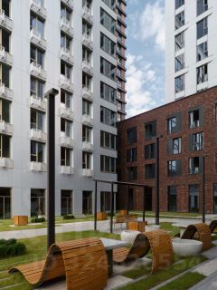 Мы создали этот проект с нуля, взяв самые лучшие решения, присущие лофтам - от высоких потолков и больших окон до свободных планировок. Здесь - нестандартная пластичная архитектура: угловое остекление, клинкерный кирпич и алюминиевые панели, сочетания разных материалов, цветов и фактур. Игра света и теней создают динамический 3D-эффект, из-за которого фасады выглядят почти как полотна ткани.