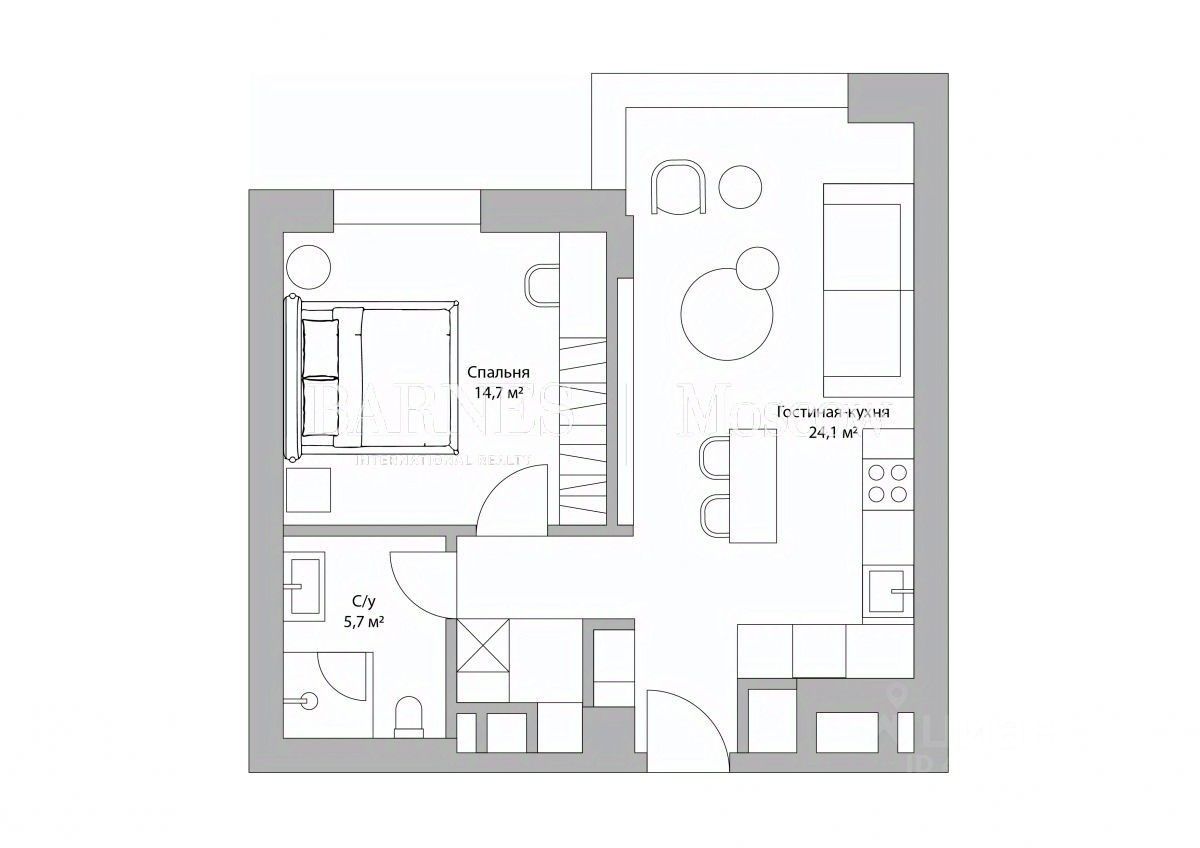 Апартамент с отделкой в современном стиле. Функциональное планировочное решение: просторная гостиная с зоной кухни, спальня, санузел, постирочная / гардеробная. В данный момент апартамент в процессе комплектации мебелью.