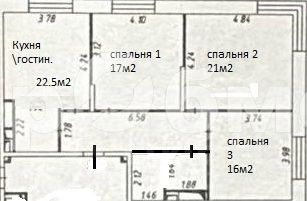 Просторная кухня-гостиная с обеденной зоной - 22.5 м², 3 изолированные спальни 21, 17 и 16 м2, санузел с ванной, теплый пол.