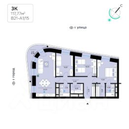 В продаже — трехкомнатная квартира с чистовой отделкой, общей площадью 117,77 кв. м. Квартира расположена на четвертом этаже одинадцатиэтажной секции корпуса класса Адвансд в новом районе СберСити, который строит Сбер. Дом находится на второй береговой линии Москвы-реки.