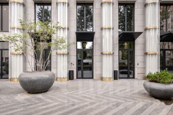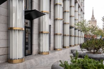 Архитектурный шедевр: ЖК Кутузовский 12 вдохновлён итальянскими палаццо и советским неоклассицизмом. Величественные 50-метровые хрустальные колонны и лунная подсветка придают зданию неповторимый облик.