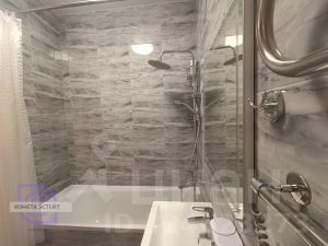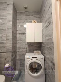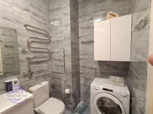 В ванной комнате: акриловая ванна Cersanit, эргономичный душ с верхней тропической лейкой, раковина с тумбой с двумя выдвижными ящиками для гигиенических средств, большое зеркало, настенный двустворчатый шкаф для хранения бытовых принадлежностей, унитаз с микро-лифтом сиденья и гигиеническим душем, универсальная стиральная машина Candy с функцией сушки белья, электро-полотенцесушитель, вытяжной электровентилятор.