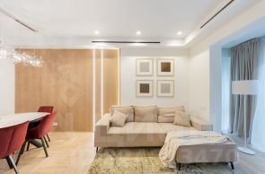В квартире сделан дизайнерский ремонт с использованием качественных материалов. Уютная обстановка и тщательно подобранная мебель создают атмосферу уюта и комфорта. Кухня оборудована всей необходимой техникой. В квартире есть два совмещенных санузла, а окна выходят как на тихий двор, так и на улицу. Две лоджии позволяют насладиться свежим воздухом и видом на окрестности.