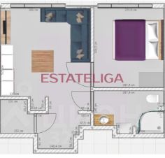 Функциональная планировка с кухней-гостиной, отдельной спальней и гардеробной.