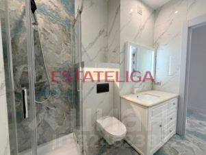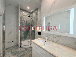 Санузел с мебелью Godi, мраморной столешницей и просторной душевой кабиной.