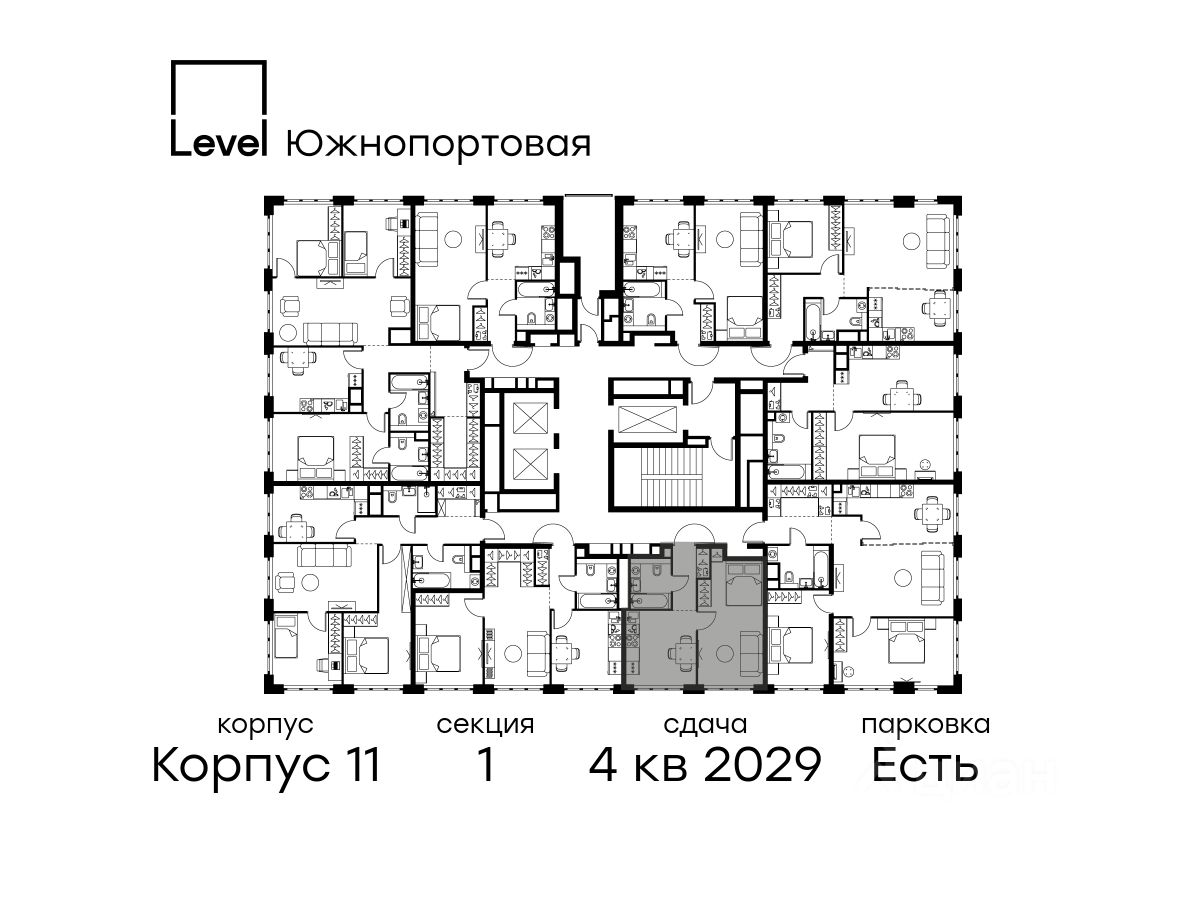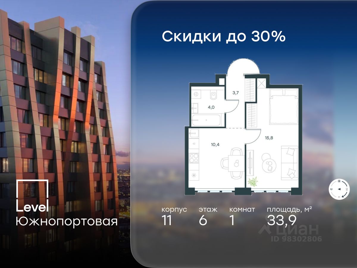 В северной части района Печатники продается 1-комнатная квартира площадью 33.90 кв.м без отделки. Квартира расположена на 6 этаже 16-этажного корпуса 11 в жилом комплексе комфорт-класса Level Южнопортовая (компания Level Group/Левел групп).