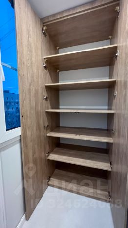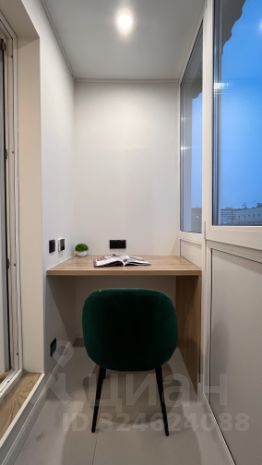 - Большая утеплённая лоджия со столом и шкафом — отлично подходит под рабочее место или дополнительную зону отдыха