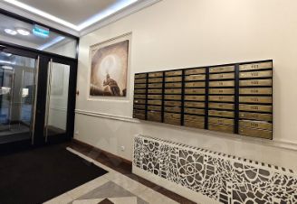 - Элегантные холлы с высокими потолками, витражами и отделкой натуральным камнем и деревом.