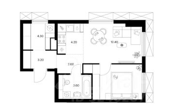 Продаётся по переуступке прав 1 комнатная квартира (Е2).