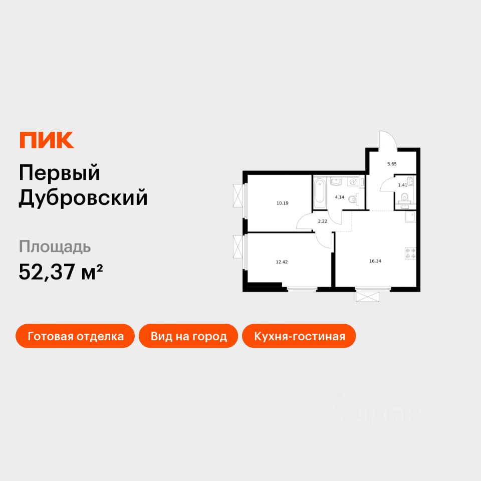 Продаётся 2-комн. квартира площадью 52,37 кв.м на 16 этаже 33 этажного дома (Корпус 1.3, Секция 1) проекта ПИК Первый Дубровский. Светлый просторный подъезд на уровне земли, функциональная планировка, большие окна, c отделкой.