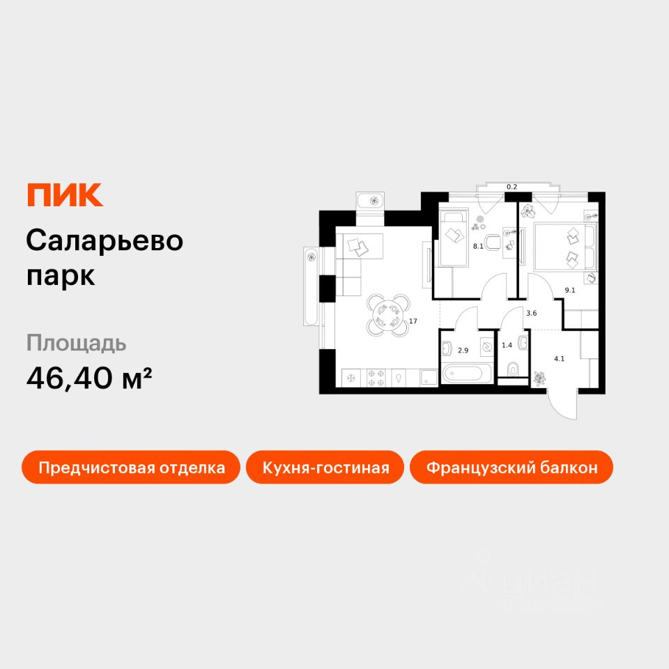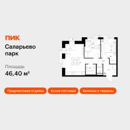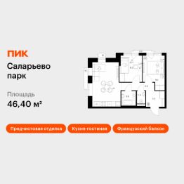 Продаётся 2-комн. квартира площадью 46,4 кв.м на 11 этаже 16 этажного дома (Корпус 57.4, Секция 4) проекта ПИК Саларьево парк. Светлый просторный подъезд на уровне земли, функциональная планировка, большие окна, предчистовая отделка.