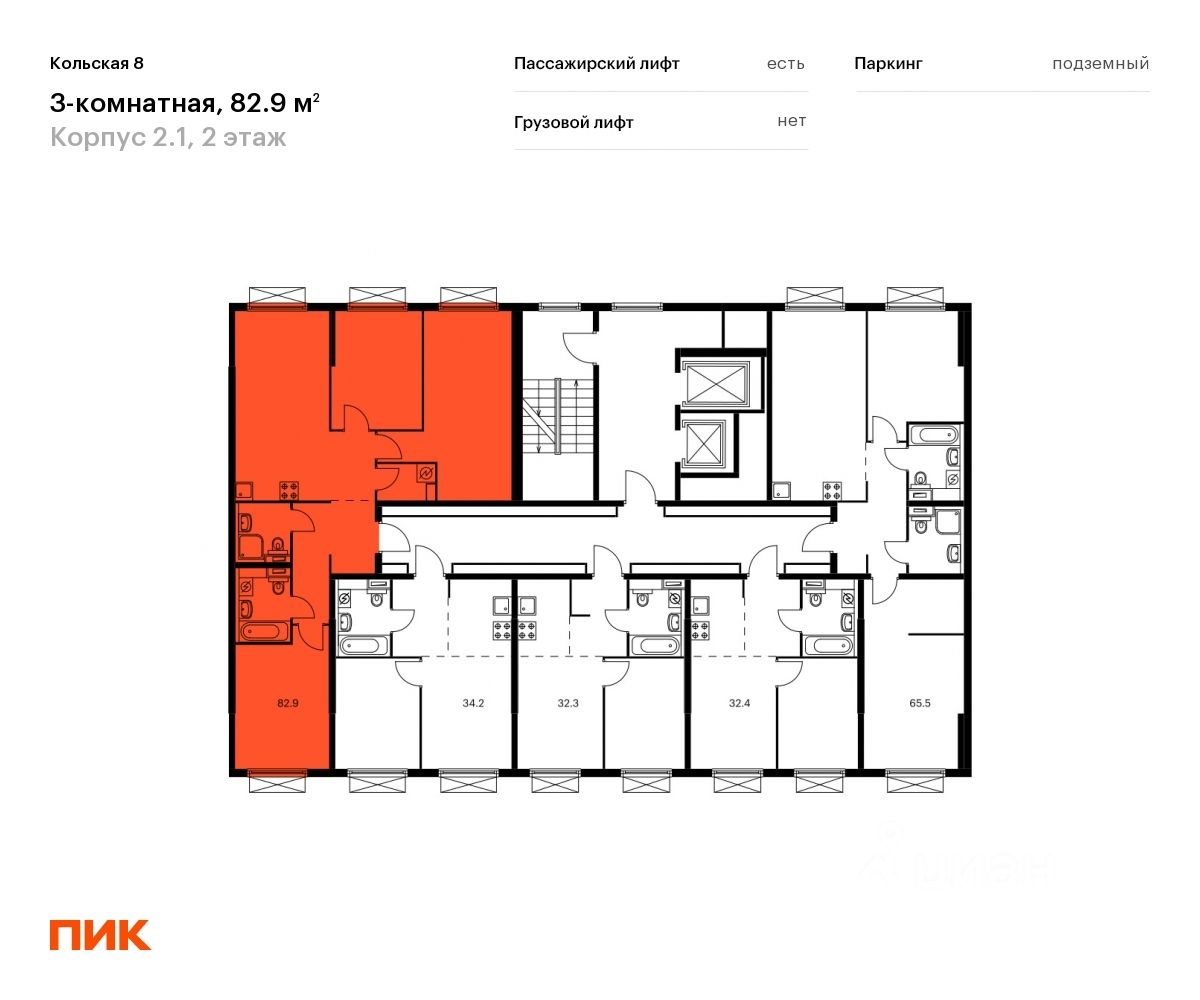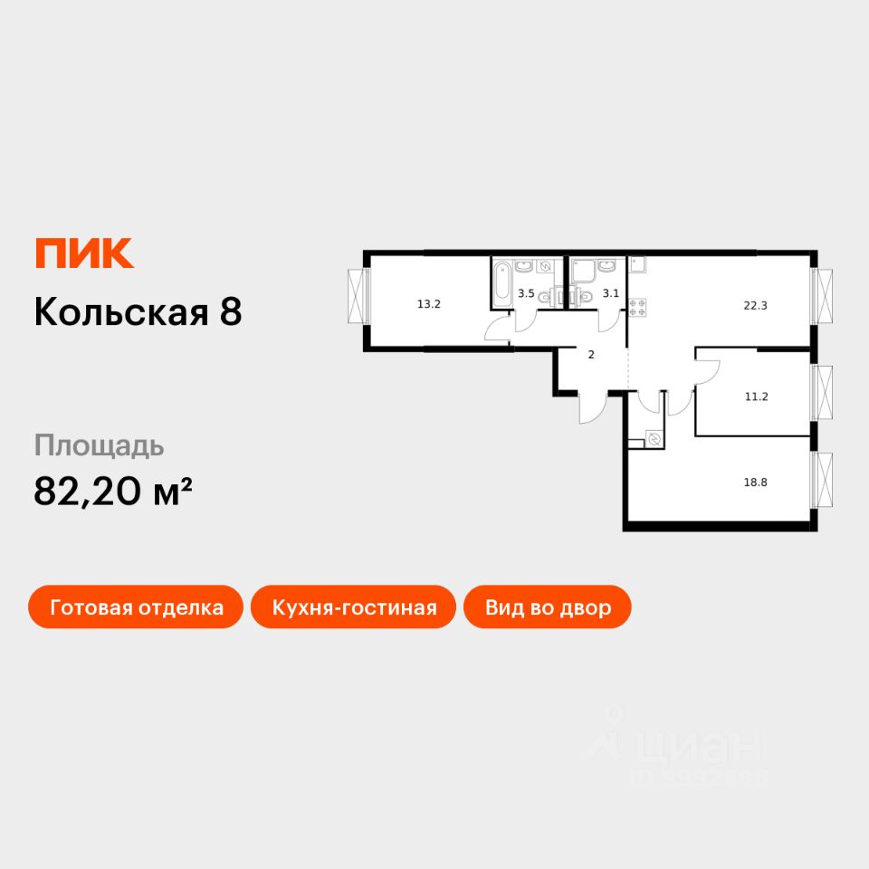 Продаётся 3-комн. квартира площадью 82,2 кв.м на 2 этаже 15 этажного дома (Корпус 2.1, Секция 3) проекта ПИК Кольская 8. Светлый просторный подъезд на уровне земли, функциональная планировка, большие окна, c отделкой.
