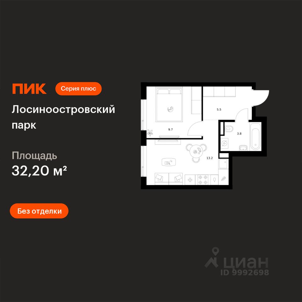 Продаётся 1-комн. квартира площадью 32,2 кв.м на 11 этаже 17 этажного дома (Корпус 2.3, Секция 2) проекта ПИК Лосиноостровский парк. Светлый просторный подъезд на уровне земли, функциональная планировка, большие окна, без отделки.