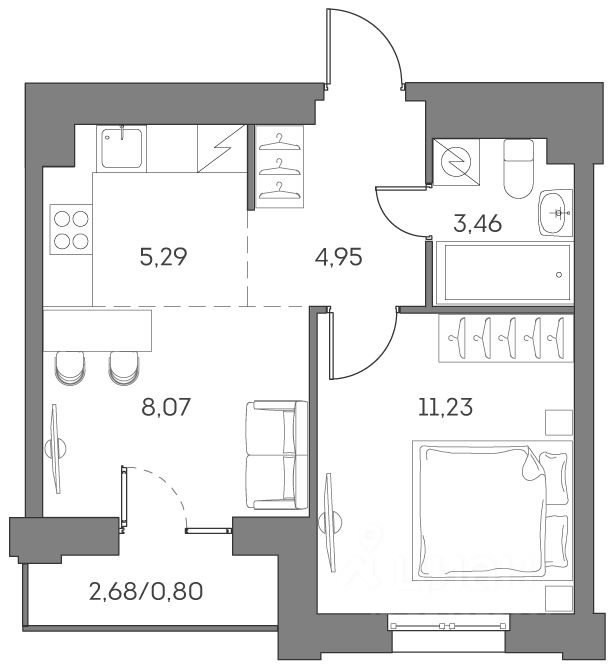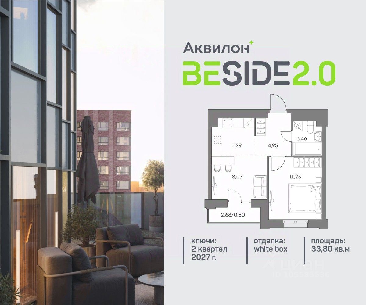 Продается уютная однокомнатная квартира на 12 этаже современного жилого комплекса Beside 2.0. Вид из окон: во двор. Срок сдачи: 2 кв. 2027 г.