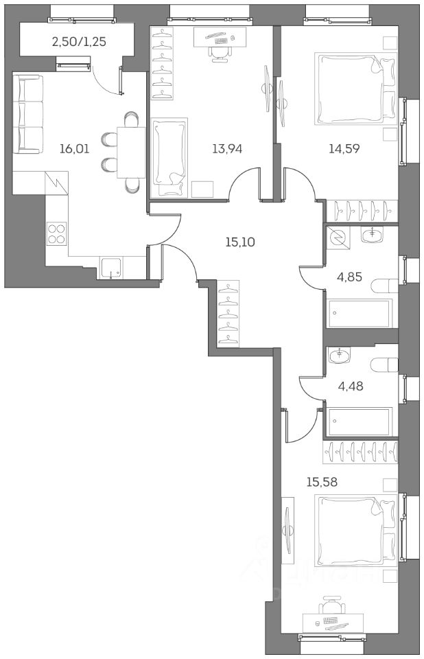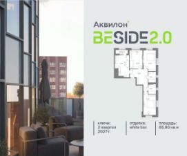 Продается просторная 3-комнатная квартира на 6 этаже современного жилого комплекса Beside 2.0. Вид из окон: во двор и на улицу. Срок сдачи: 2 кв. 2027 г.