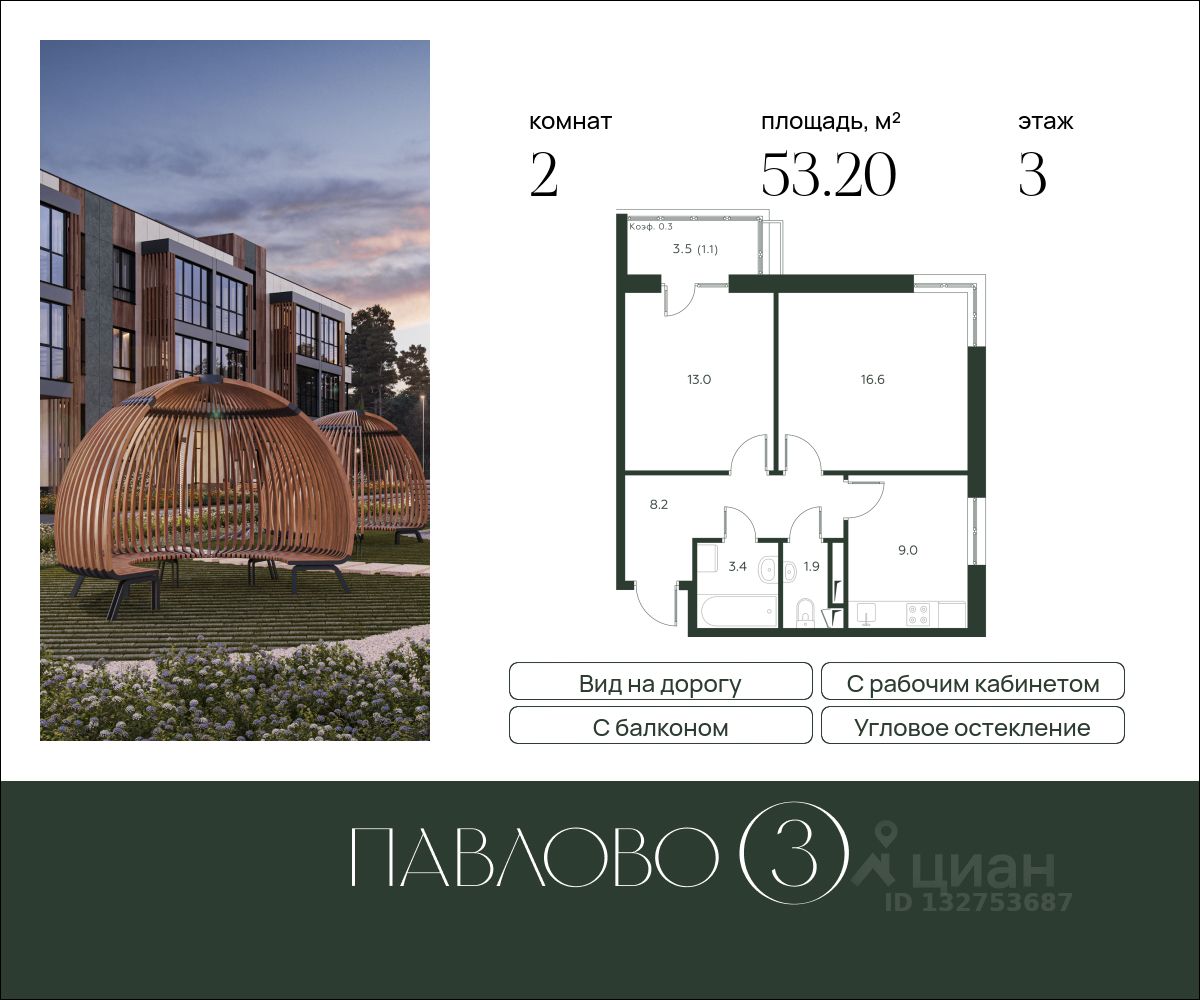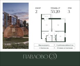 Старт продаж! Продается 2-комнатная квартира в новом клубном жилом комплексе "Павлово 3" площадью - 53.20 кв. м на 3 этаже, в корпусе 2 в малоэтажном монолитном доме от компании-застройщика.