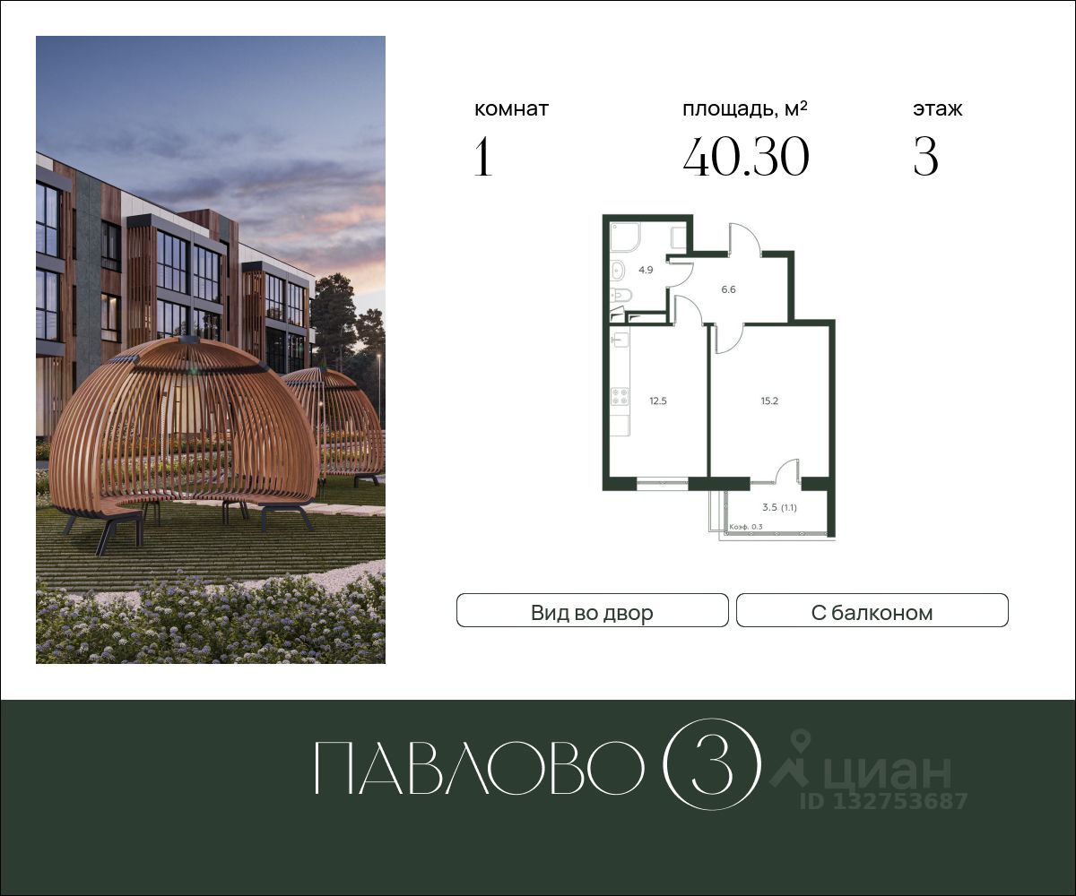 Старт продаж! Продается 1-комнатная квартира в новом клубном жилом комплексе "Павлово 3" площадью - 40.30 кв. м на 3 этаже, в корпусе 3 в малоэтажном монолитном доме от компании-застройщика.