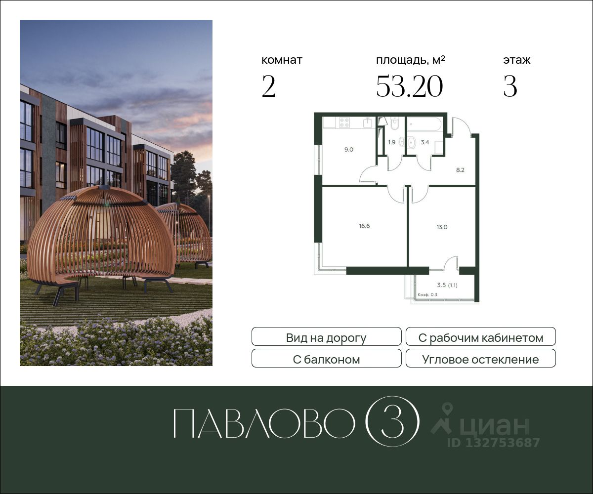 Старт продаж! Продается 2-комнатная квартира в новом клубном жилом комплексе "Павлово 3" площадью - 53.20 кв. м на 3 этаже, в корпусе 3 в малоэтажном монолитном доме от компании-застройщика.