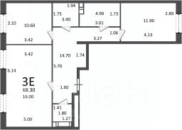 3-комн. кв., 68,3 кв.м