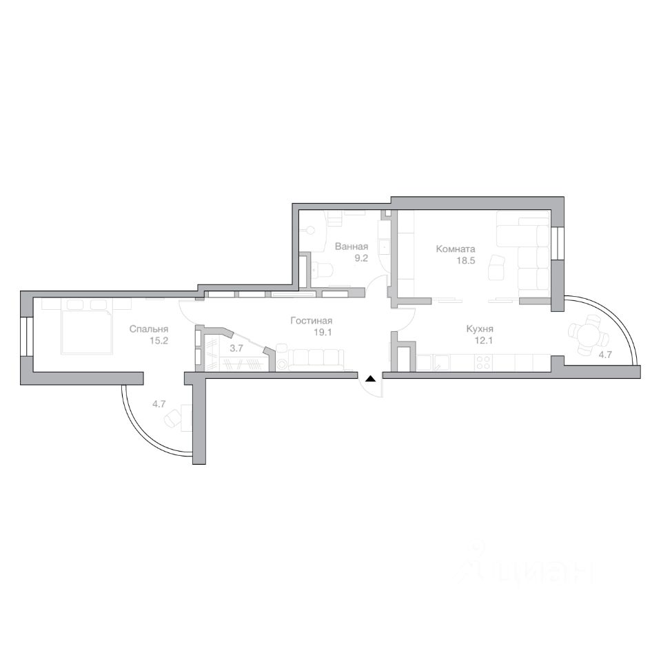 • Квартира полностью укомплектована мебелью и техникой — продажа осуществляется в комплектации под ключ