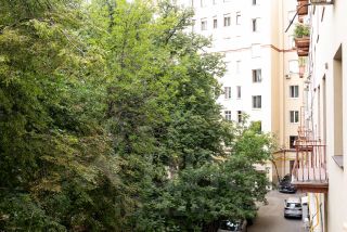 Фасадный сталинский дом. Толстые стены. Отличная шумоизоляция. Все окна выходят в тихий зеленый двор. Шума от Садового кольца вообще нет. Все соседи очень спокойные и доброжелательные люди. Все знают друг друга и очень трепетно и с любовью относятся к своему дому. Во дворе установлен шлагбаум, что обеспечивает наличие парковки для жителей дома.