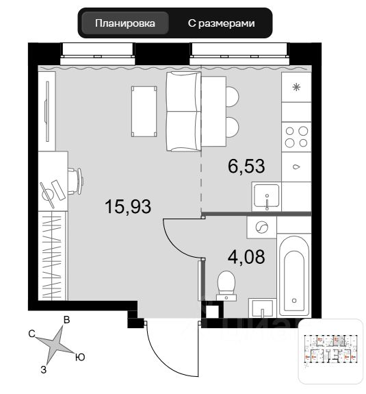 - Жилая площадь: 15.9 кв. м