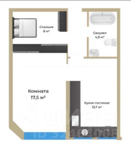 Здесь пространство было немного уменьшено для того, чтобы организовать спальню, но места достаточно. Большой стол НЕ оставляем (либо по договоренности за отдельную плату). Все остальное остается.