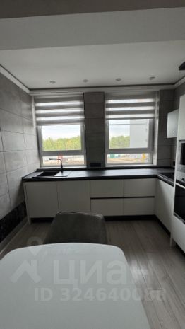Здесь пространство увеличено за счет лоджии и вентиляционного короба. На месте лоджии организована кухонная зона с большой рабочей поверхностью и окнами. Шкафы для хранения находятся внизу и сбоку над микроволновкой. Мебельное оснащение обговаривается.