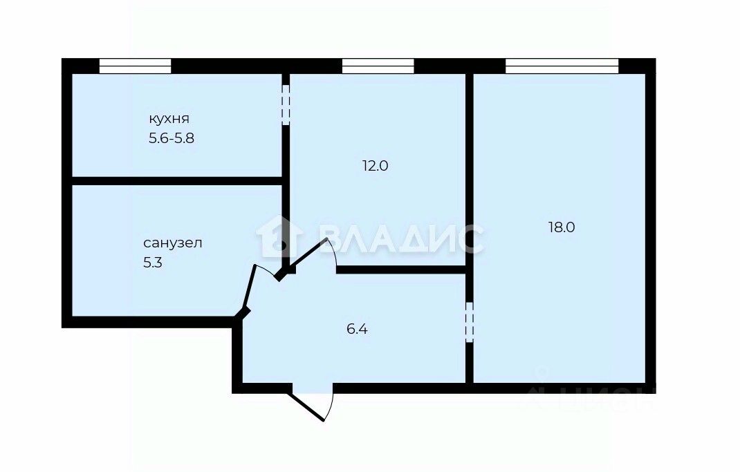 Площадь квартиры 47.5 м2, расположена на 2 этаже, комнаты изолированные (18+12) кв.м., потолки-2.60, кухня 5,8м2, коридор - 6,4 м2, сан. узел совмещенный, установлены стеклопакеты, окна выходят в тихий и очень зеленый двор.