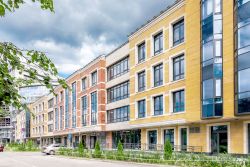 Всего 4 этажа, 108 апартаментов, с подземным паркингом, собственной территорией и панорамными окнами.