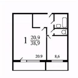 Удобная планировка с просторной комнатой 21м² и большой кухней м².