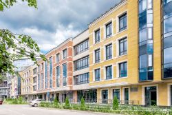 Всего 4 этажа, 108 апартаментов, с подземным паркингом, собственной территорией и панорамными окнами.