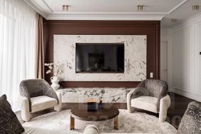 Эстетика, природные материалы — дубовый шпон, натуральный камень — и продуманные решения формируют атмосферу нашего пространства.
