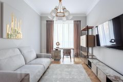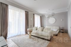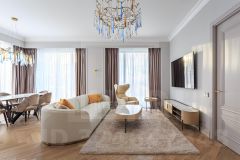 В квартире абсолютно новая итальянская мебель, кухня укомплектована техникой премиум-класса (Miele, Liebherr), люстры для данного дизайн-проекта привезены из Нидерландов.