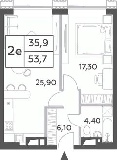 Общая площадь квартиры 53.7 м2 и высота потолков 3.1 м. Устанавливаются премиальные окна Schuco с панорамным остеклением с функцией проветривания, конвекторы в полу. Светлая квартира с кухней-гостиной 26 м2 с большим санузлом. Окна квартиры с потрясающими видами на закат на Долину реки Сетунь. На каждом этаже есть технические балконы для установки системы кондиционирования.