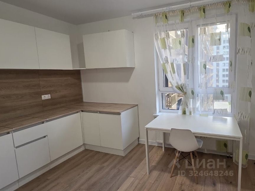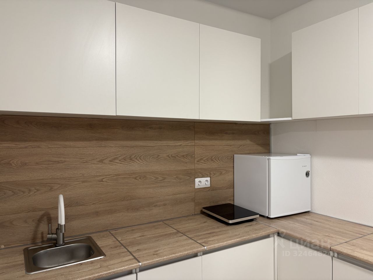 В студии разместились: кухонная мебель со множеством шкафов и полок, мини холодильник, стол со стульями, шкаф для хранения вещей. Сантехнический узел совмещён. Окно комнаты выходит в тихий благоустроенный двор без машин. Вход в подъезд осуществляется с двух сторон.