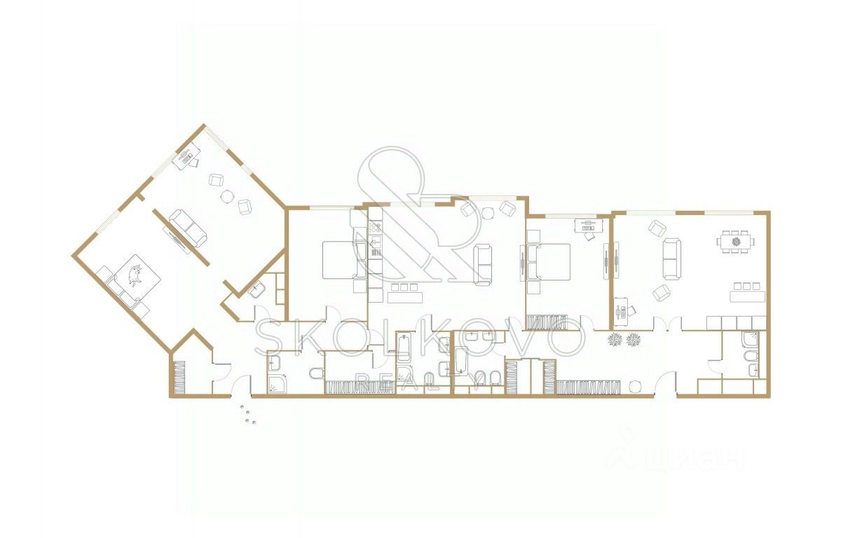 Большая площадь: Возможность организации 5-6 спален, кухни-гостиной, кабинета, гардеробных, ванных комнат, постирочной и гостевого санузла с высотой потолков 3,4 м.