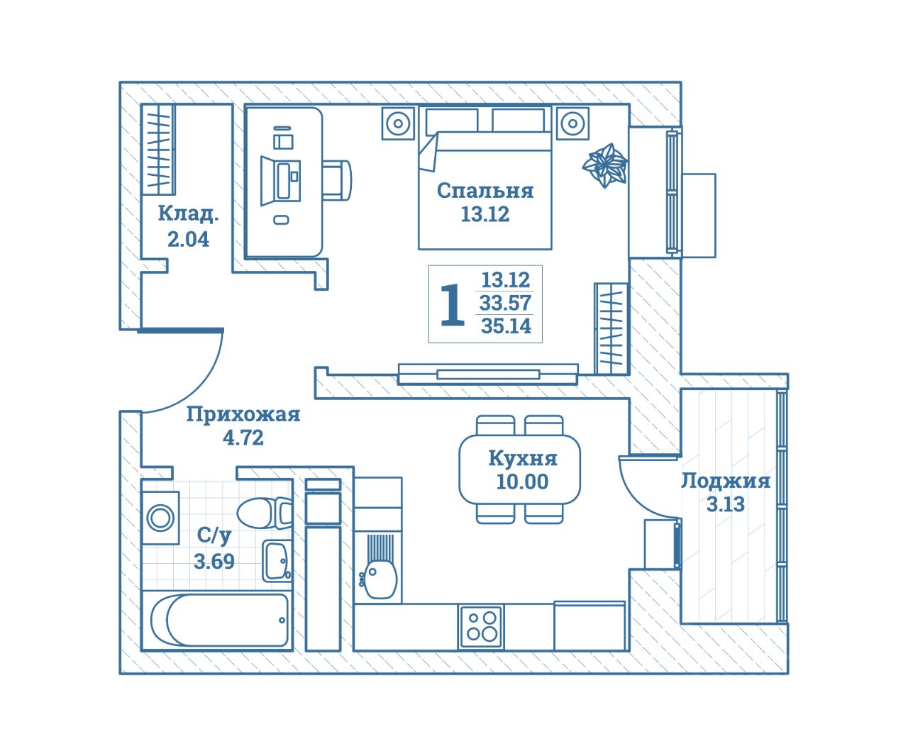 Общая площадь35,14 м²