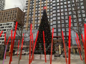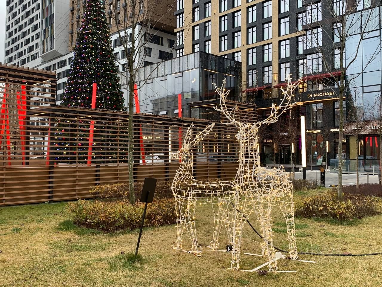 Рядом — парки Берёзовая роща и Ходынское поле, ТЦ Авиапарк, стадионы ЦСКА и ВТБ Арена. В самом комплексе: собственный парк с фонтанами, фитнес-центр с бассейном 25 м, подземный паркинг с зарядками для электромобилей, а на первых этажах — кофейни, ВкусВилл, салоны красоты.