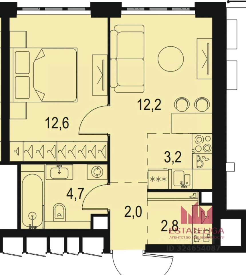 Id 58842. ПРОДАЁТСЯ 1-КОМНАТНАЯ КВАРТИРА ФОРМАТА ЕВРО-2 В ЖК LEVEL ЮЖНОПОРТОВАЯ