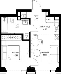 В ЖК SET продается 1-комнатная квартира площадью 35.53 м², расположенная в корпусе Б, на 17 этаже 59 этажного дома.